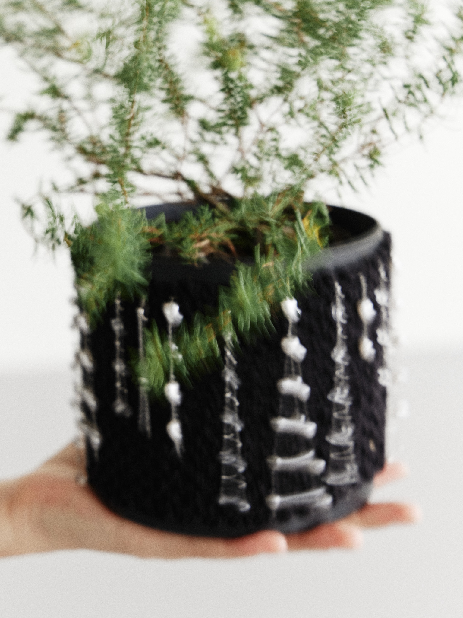 끈으로 묶어 고정하는 방식으로 다양한 사이즈의 화분에 입히기 좋으며,써지컬 스틸 소재를 사용해 식물 식재 시 분무나 습기로 인한 부식·변색이 발생하지 않도록 제작했습니다.